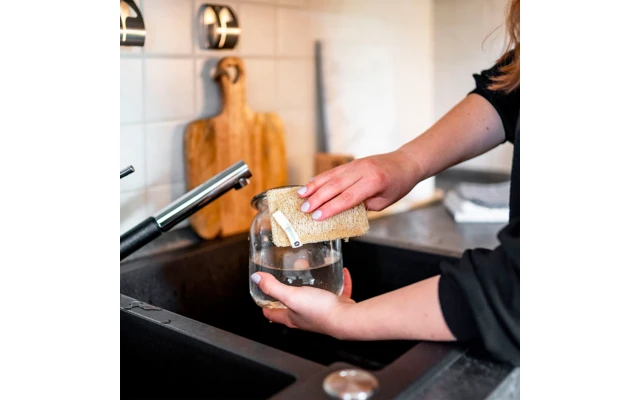 Vor dem Spülen mit Wasser anfeuchten, dadurch wird der trockene Luffa Schwamm ganz weich und erreicht seine optimale Größe zur Verwendung. Spüle deinen Küchenschwamm nach der Benutzung mit klarem Wasser aus und hänge ihn zum trocken an der Schlaufe auf. Ist der Schwamm gerade nicht in Verwendung, lagere ihn an einem trockenen Ort. Nach mehrmaliger Verwendung sollten die Spülschwämme in der Waschmaschine oder Spülmaschine gewaschen werden – dadurch sind sie wieder sauber und viel länger verwendbar als herkömmliche, übel riechende Plastikschwämme. Wenn du die Reinigungsschwämme täglich benutzt, solltest du sie für ein optimales Ergebnis trotz regelmäßiger Pflege und Wäsche nach 4-6 Wochen austauschen.