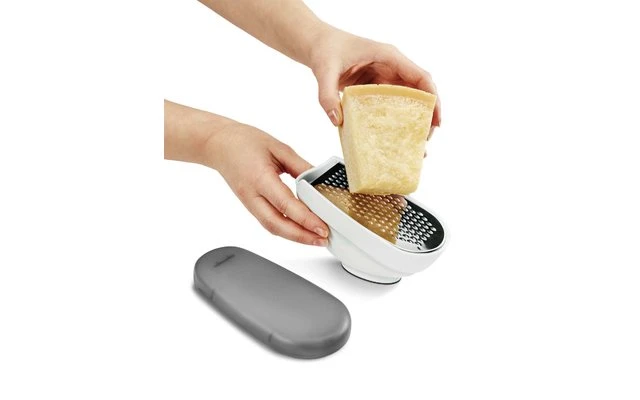 - Mit 3 verschiedenen, wechselbaren Reiben