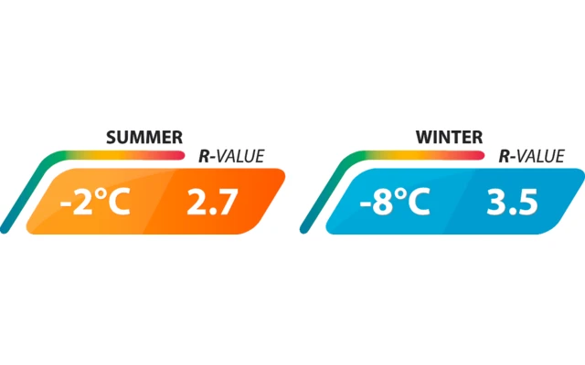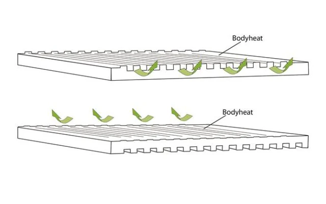 Einzigartige Konstruktion des Schaumstoffs dient der Wärmeregulierung und garantiert ganzjährigen Komfort
