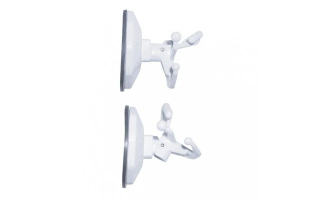 Multifunktionell mit mehreren Aufhängern. Einfachste Montage durch Spezialsaugnapf, der sich auf glattem Untergrund durch Umlegen des Hakens festsaugt. Preis pro Stück.
