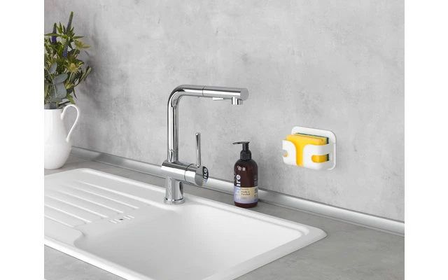 Der praktische Schwamm-Halter ist der ideale Platz zur bakterienfreien Trocknung des Spülschwamms.